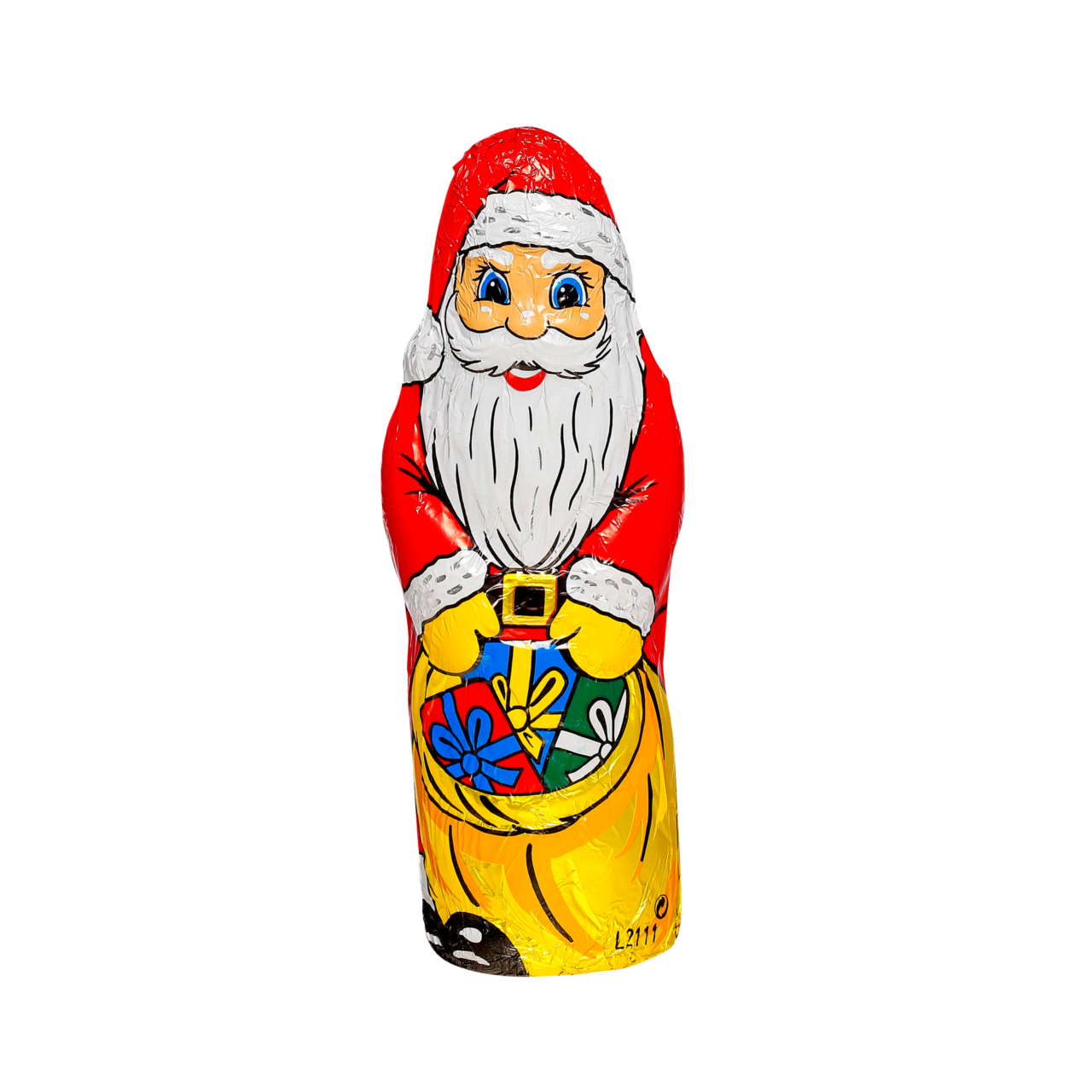 Hohoho! Här kommer en liten chokladtomte från vår tomteverkstad. Naggande god mjölkchoklad iförd en snygg och ny tomteskrud som passar till alla juliga sammanhang. I granen, julstrumpan och på gottebordet!