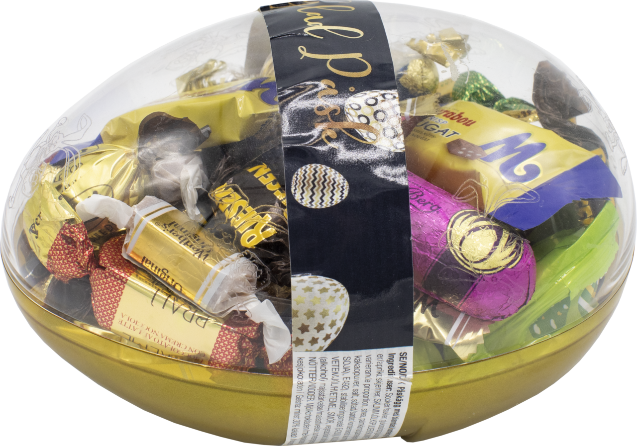 Vårt lyxiga premiumägg innehåller påskgodis av det lite lyxigare och vuxnare slaget. Själva "äggskalet" är lite mer premium i sin design och innehållet enbart inslagna produkter och andas lyx och flärd, så varsågoda - vårt premiumägg!