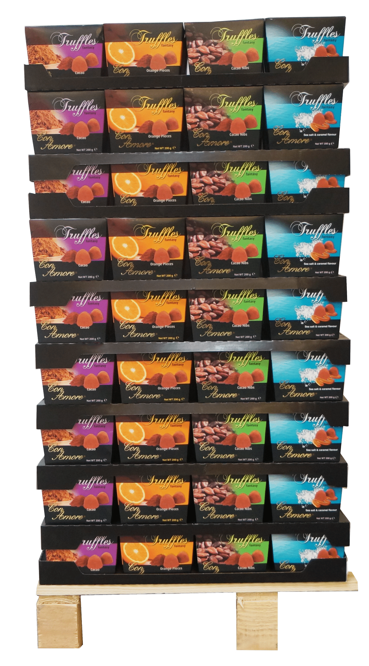 Tryfflar som kommer i en superbekväm exponerad lösning med 4 olika smaker. Det säljs massor av tryffel året runt men har sin konsumtionspeak under kvartal 4. Valet är enkelt, "honom skall vi ha"!