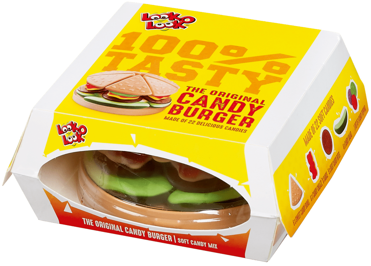 En godishamburgare! En given succé på alla kalas som riktigt sticker ut och är väldigt innovativ. Uppdelad i 6 portionsbitar så man inte spiller på sig!
