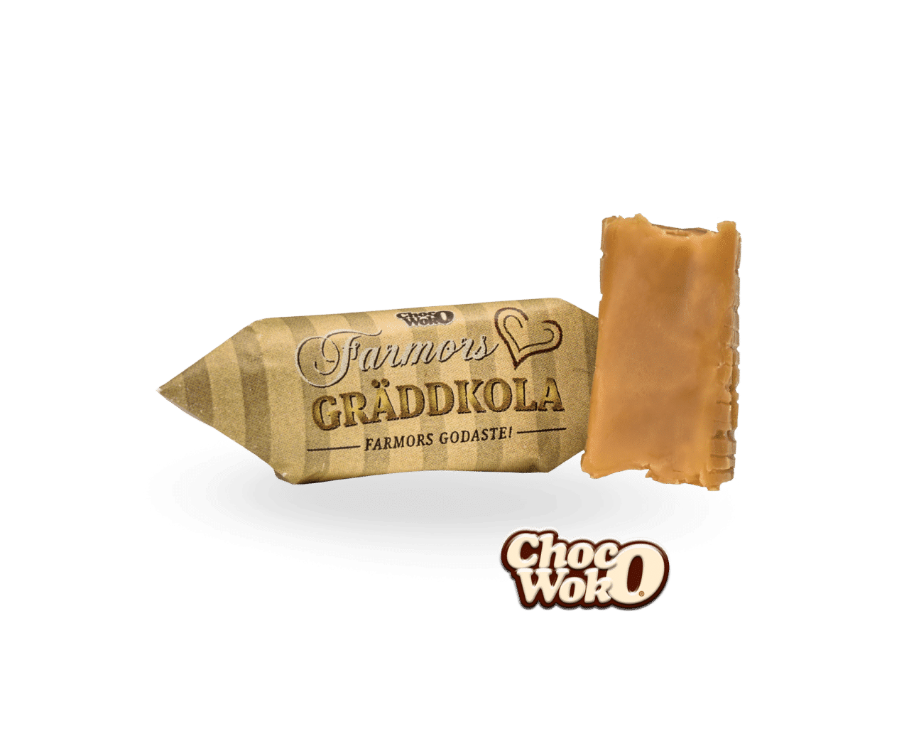 Ingredienser: socker, glukossirap, HELMJÖLKSPULVER (13%), margarin (vegetabiliska oljor och delvis härdat fett (palm, raps)). Kan innehålla spår av SOJA, ÄGG, NÖTTER och JORDNÖTTER.