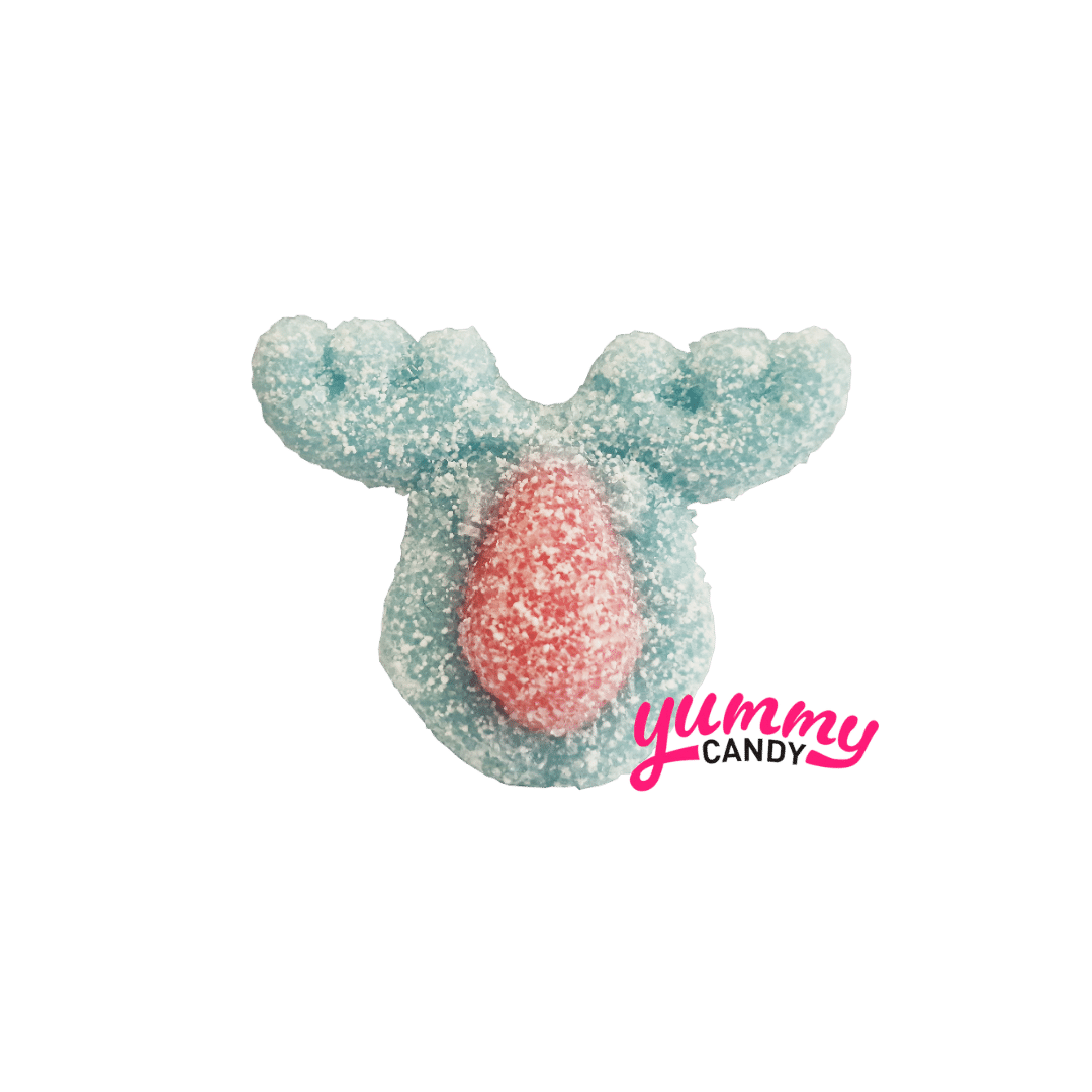 socker, glukossirap, vatten, gelatin, syror (E270, E296, E330, E296, E350), surhetsreglerande medel (E500), aromämne, koncentrat från spirulina och äpple, svart morotsjuicekoncentrat.