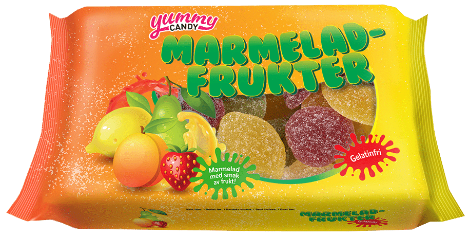 Denna lättsockrade och gelatinfria mjuka marmelad är en riktig klassiker. Marmeladen är formgjutna frukter i kända format och helt magiska munsbitar. Yummi!