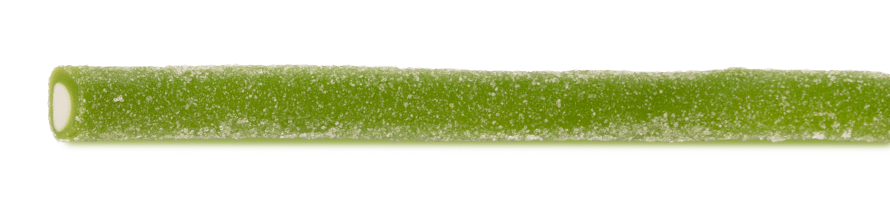 Denna gröna och lite lätt sura rem smakar som äpple som inte riktigt har mognat på sin gren. Men i konfektyrvärlden är det perfekt med just den mognadsgraden. Lagom syrabalans och sälta.