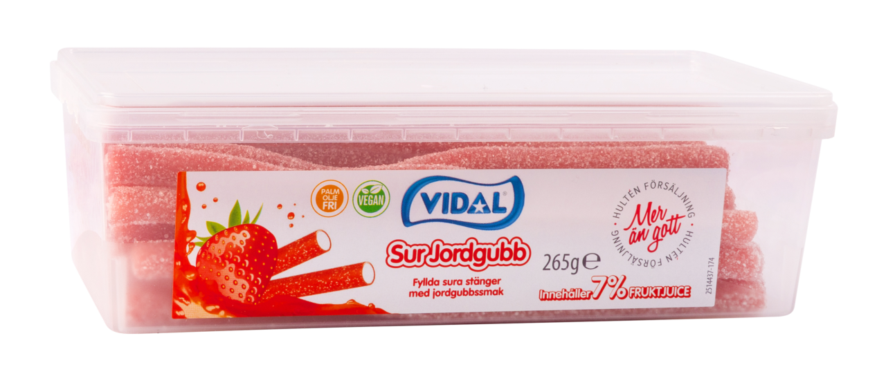 Perfekt balans mellan det sura, sockrade och dess fantastiska smaksättning av jordgubb. Innehåller jättegod fruktjuice som gör att smakkombinationen blir himmelsk. Gelatinfritt så alla kan äta den!